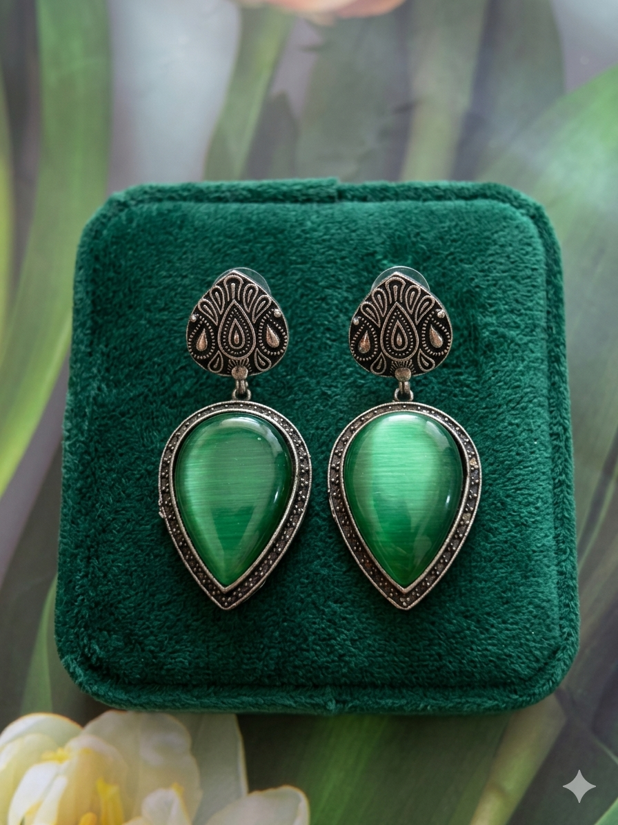 Add a touch of elegance with our Royal Jade Chandeliers, designed to make a bold yet graceful statement. Featuring rich jade tones and intricate detailing, these earrings bring royal charm to both festive and special occasions. Lightweight and stylish, they perfectly complement ethnic and fusion outfits. ✨