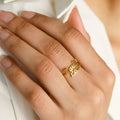 The Ring has predominantly of gold color, making it look elegant and royal. Gold is the perfect color for Two Names Customized Unisex Name Rings, making your Ring look sophisticated. Gold color on Ring is bright and metallic simultaneously, making the personalized Ring stand out of the crowd.